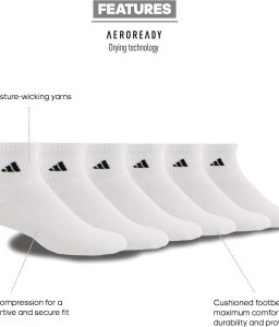 Men’s Socks, Athletic Cushioned Quarter 6-Pack, Ankle Fit with Arch Support